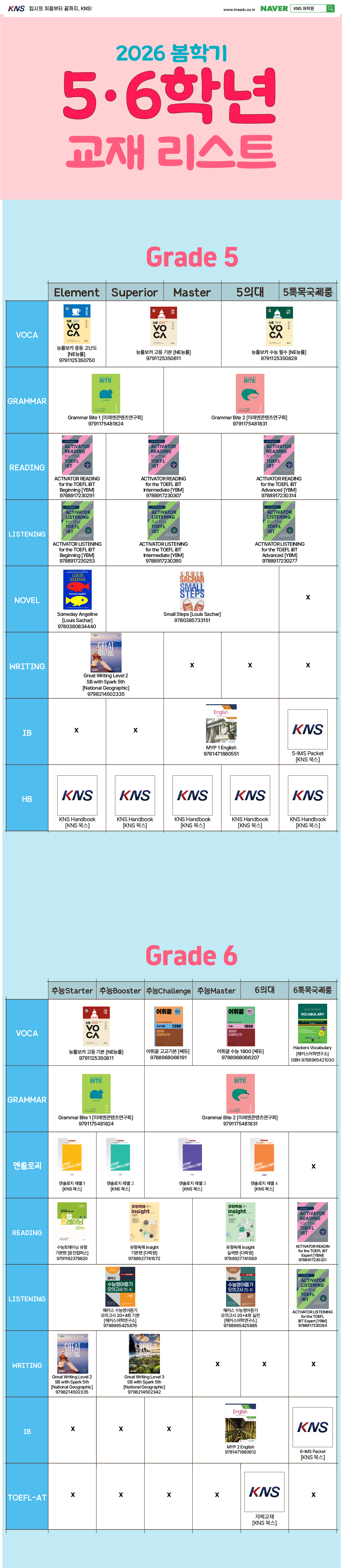 [초56/주2회반] 2026 봄학기 교재리스트